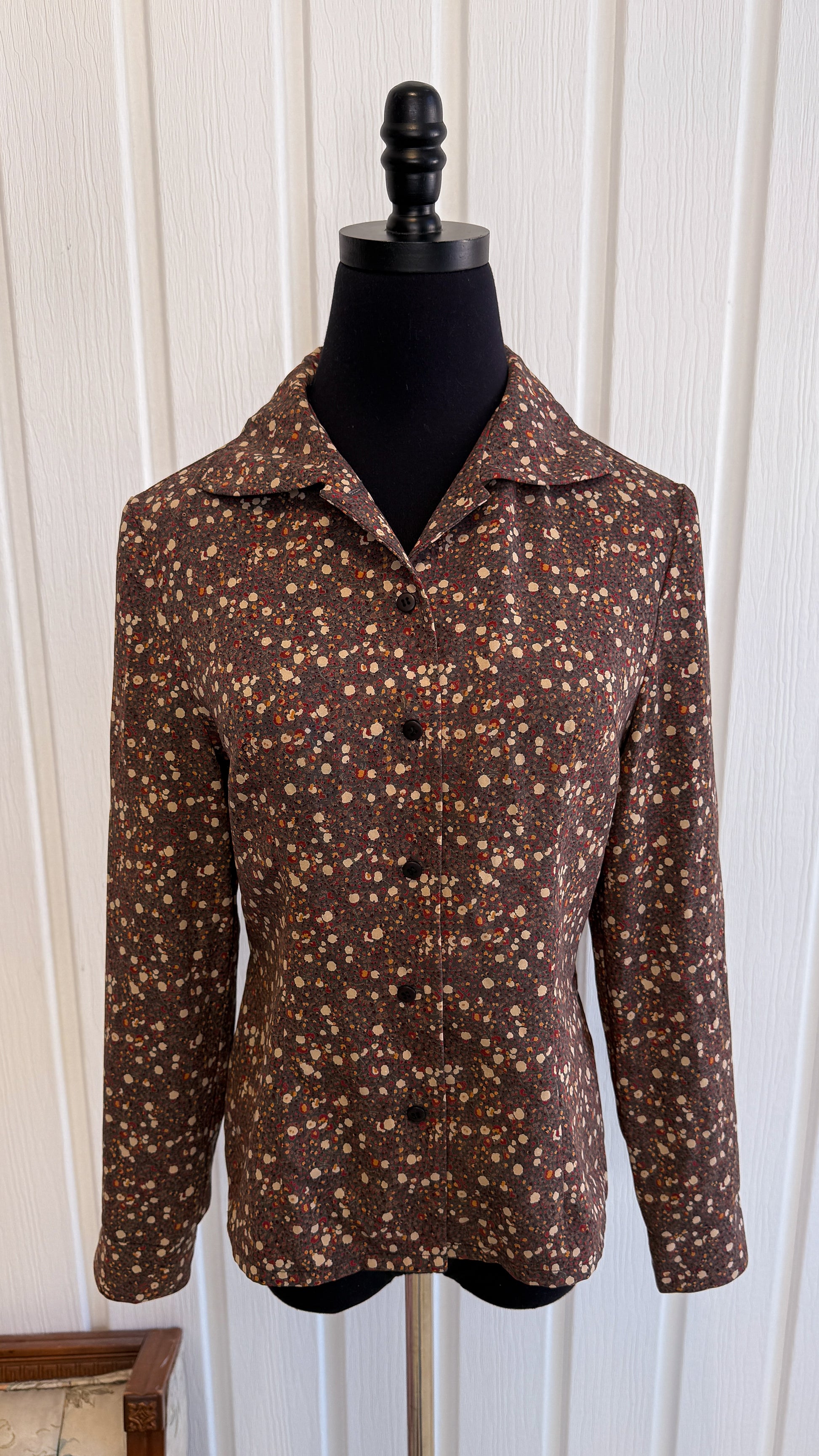 Chemisier fleuris brun,rouge et beige- small