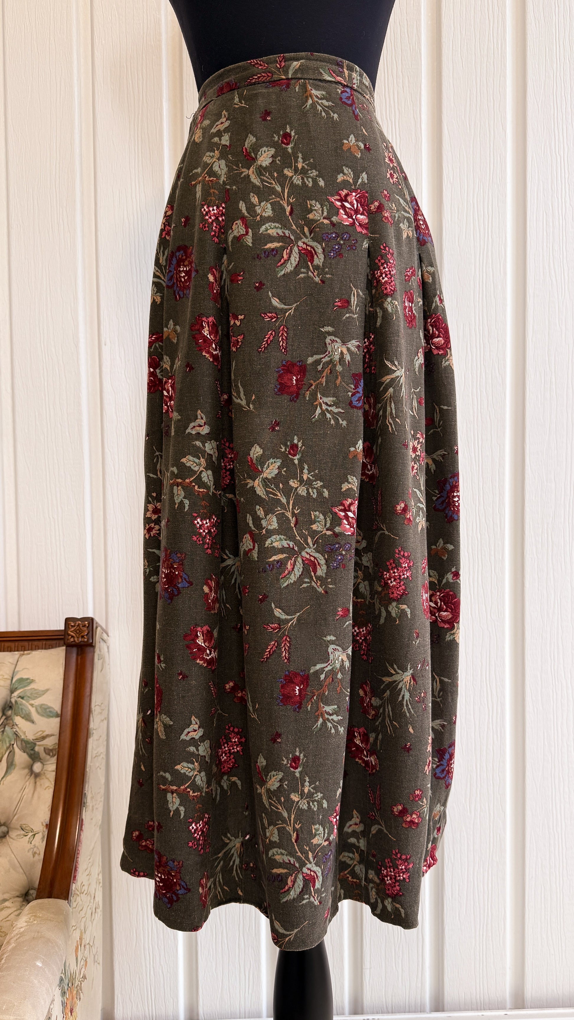 Jupe brune fleurie évasée- small