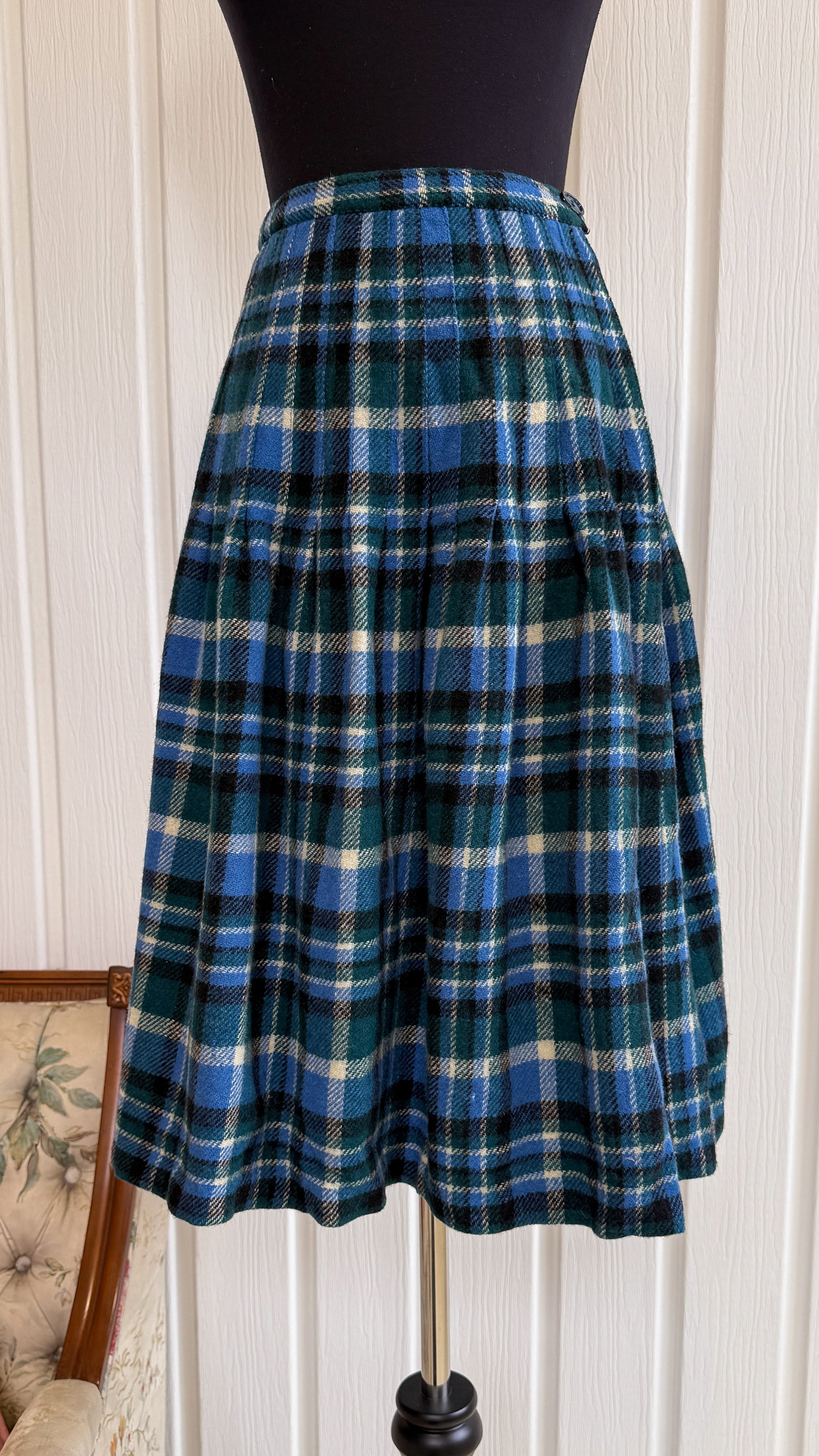 Jupe en lainage carreauté bleu- small
